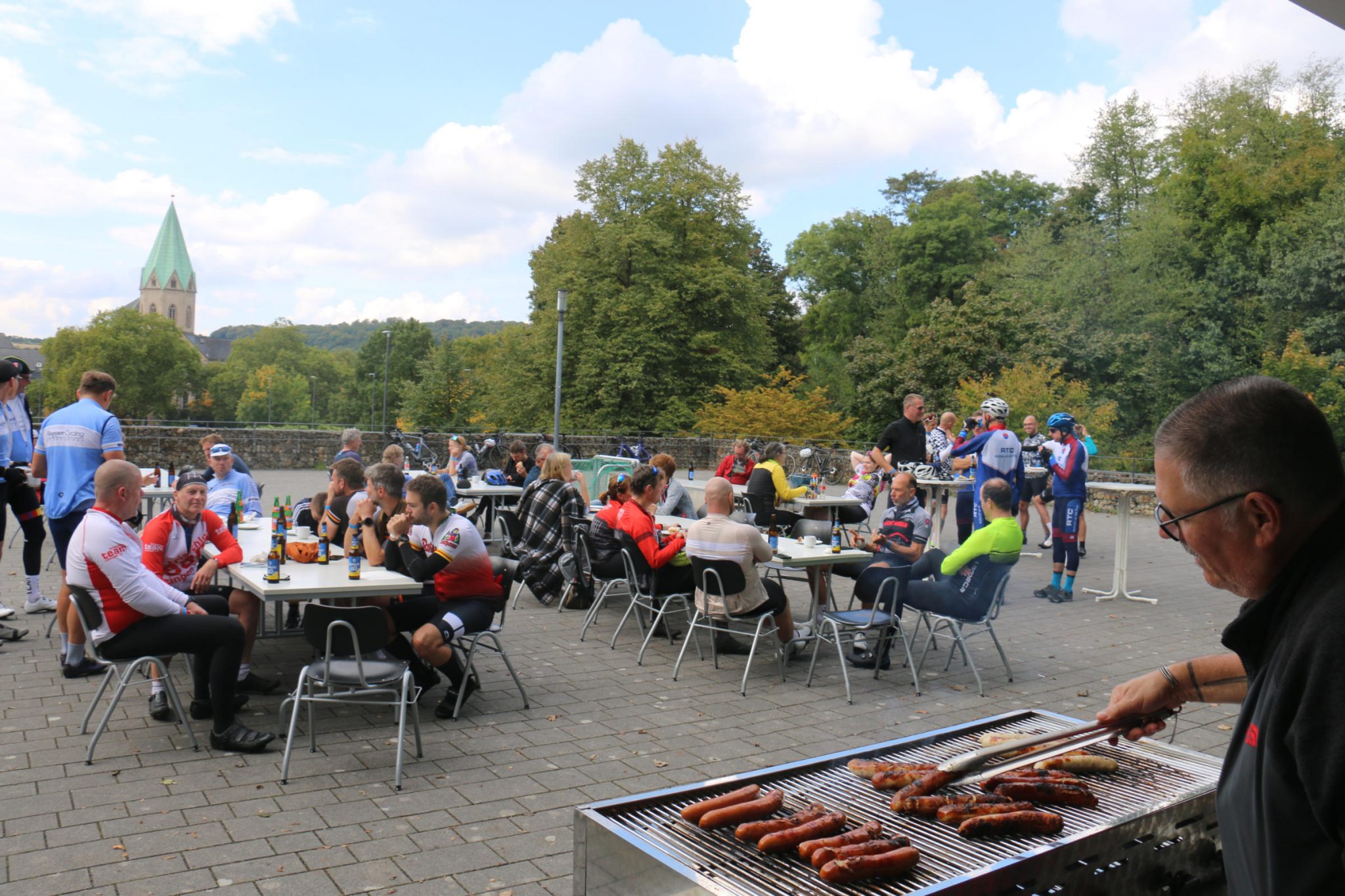 Nach der Tour ist wie immer Zeit für ein nettes Beisammensein bei Kaffee, Kuchen, Kaltgetränk und Rennwurst – natürlich bei strahlendem Sonnenschein.